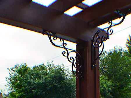 After several revisions, we had addressed all of the desired aspects. During the design process, the client mentioned the use of ornamental steel as a design element which was incorporated into the pergola corbel braces, and also as a support for the 6’ diameter granite table top.